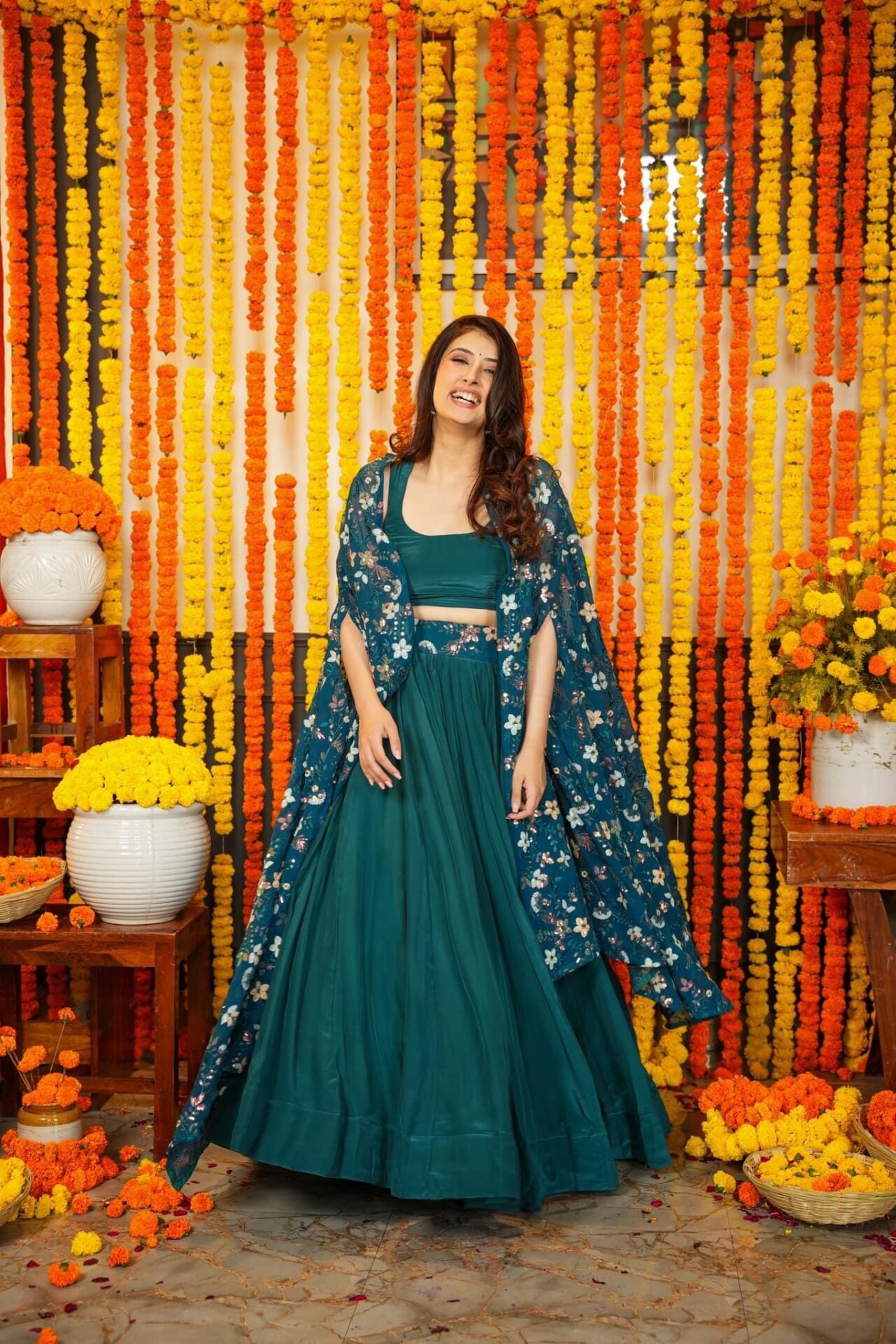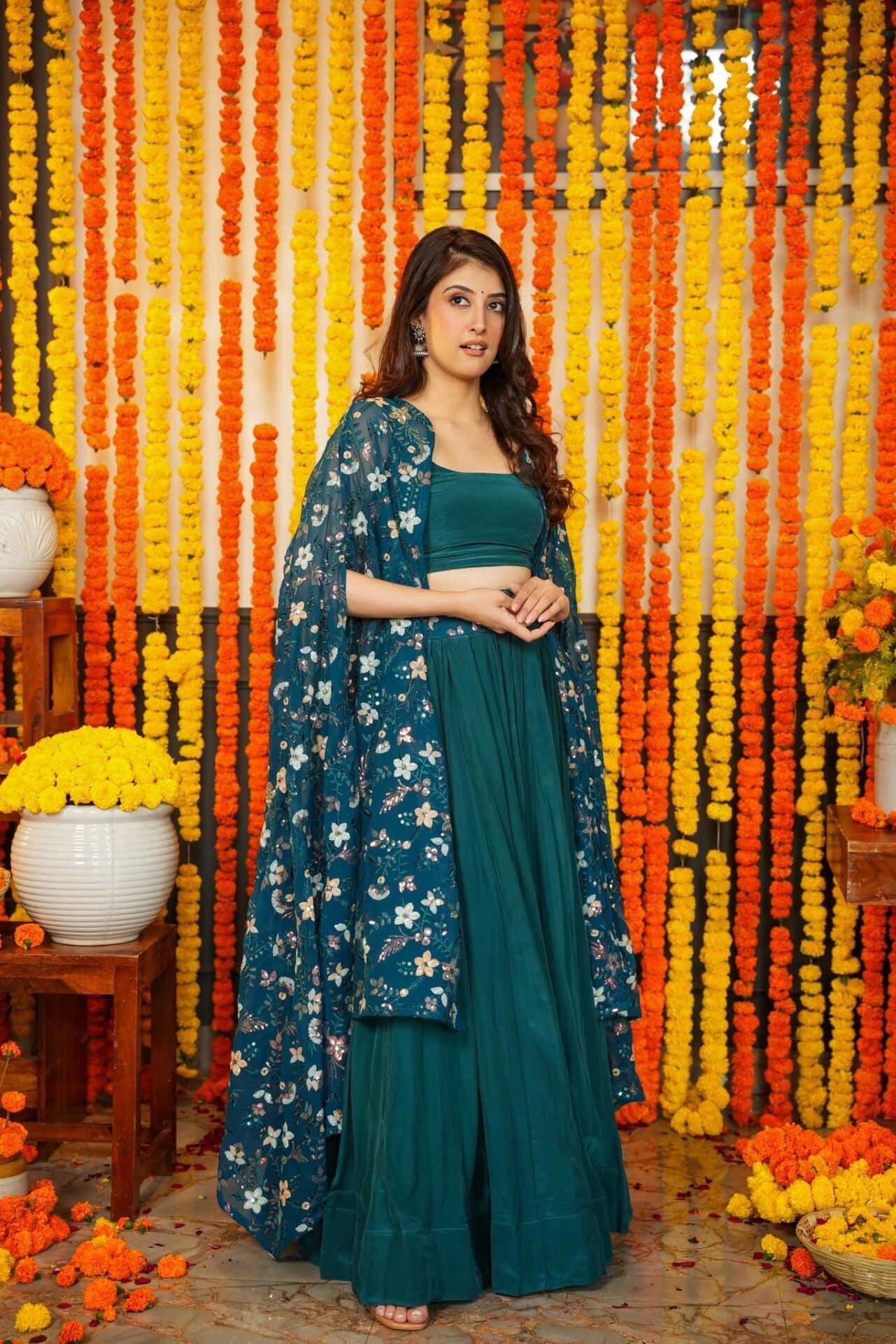 Melody green croptop-shrug set