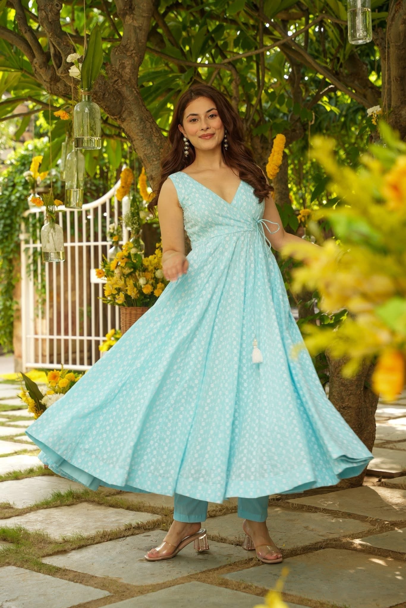 Nerida Blue Cotton Schiffli Kurta Set