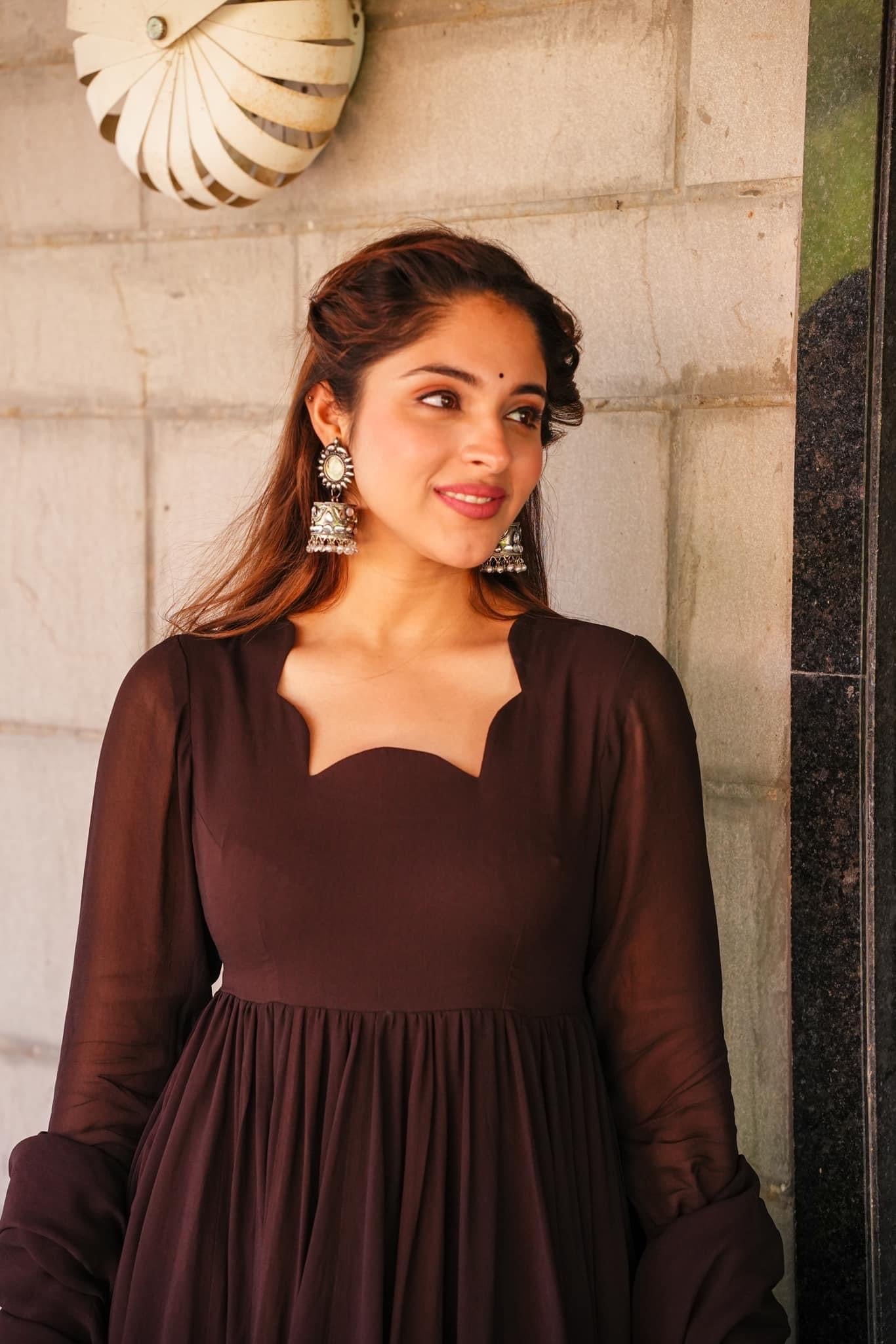 Tahira brown georgette suit set